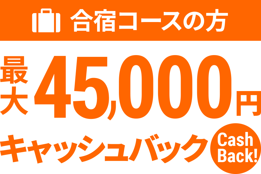 入校日2ヶ月前までに予約をいただいた方には、5,000円を入校時にキャッシュバックします。